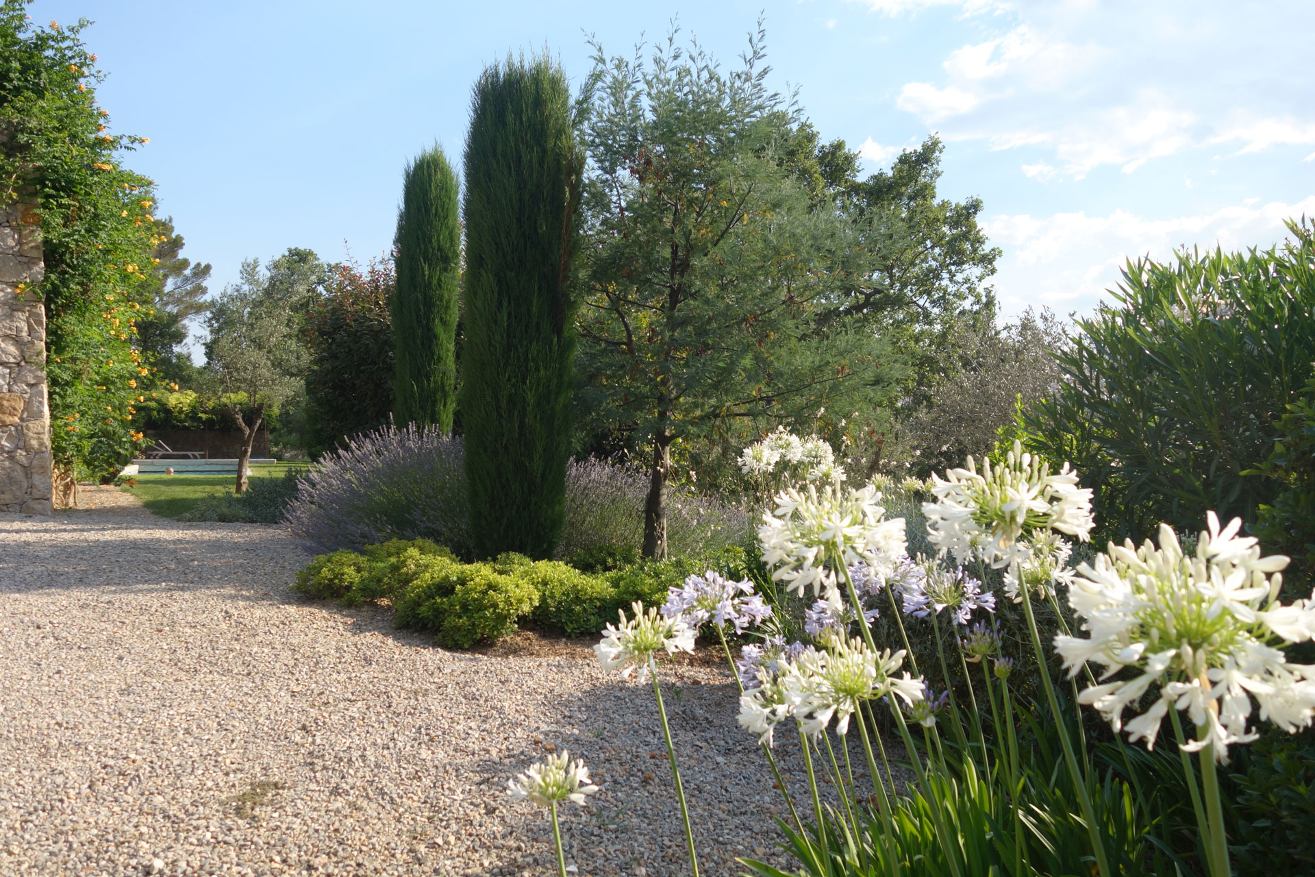 Brigitte Dematteis peut également vous aider à redessiner l’entrée de votre villa, aménager vos terrasses extérieures, aménager les abords de votre piscine, créer un jardin méditerranéen.